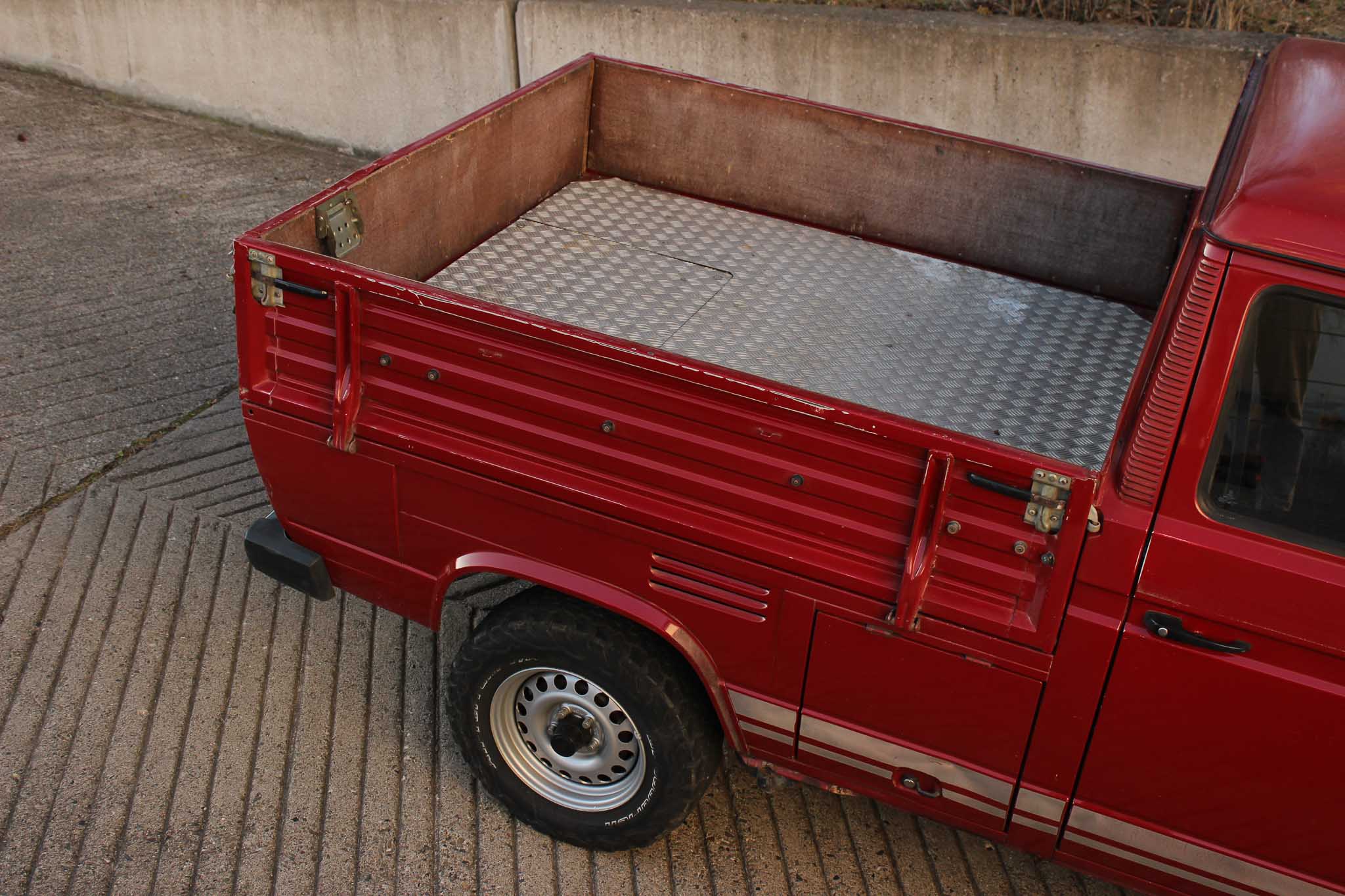 Diese hat in die Technik laufend investiert und der Wagen fährt sich hervorragend. Nicht zuletzt durch den kraftvoll laufenden Motor samt langem 5-Gang Schaltgetriebe. Weitere Annehmlichkeiten wie eingetragene 15 Zoll Mefro Felgen auf BF Goodrich A/T Reifen, eine leichte Höherlegung sowie originale T3 Bügelspiegel runden das Gesamtbild des Oldtimers ab.